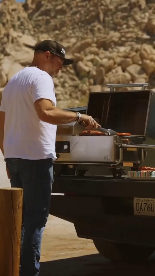 Meet Pi—the world's first dual-battery powered adventure pellet grill. Break free from outlets and backyards. Get up to 8 hours on each battery and 20 hours of runtime with dual batteries and seamless hot-swap tech. Adventure-ready with 4 wheels and vehicle hitch compatibility. Take it to the trails, the camp, or the road. No heavy lifting. No limitis.